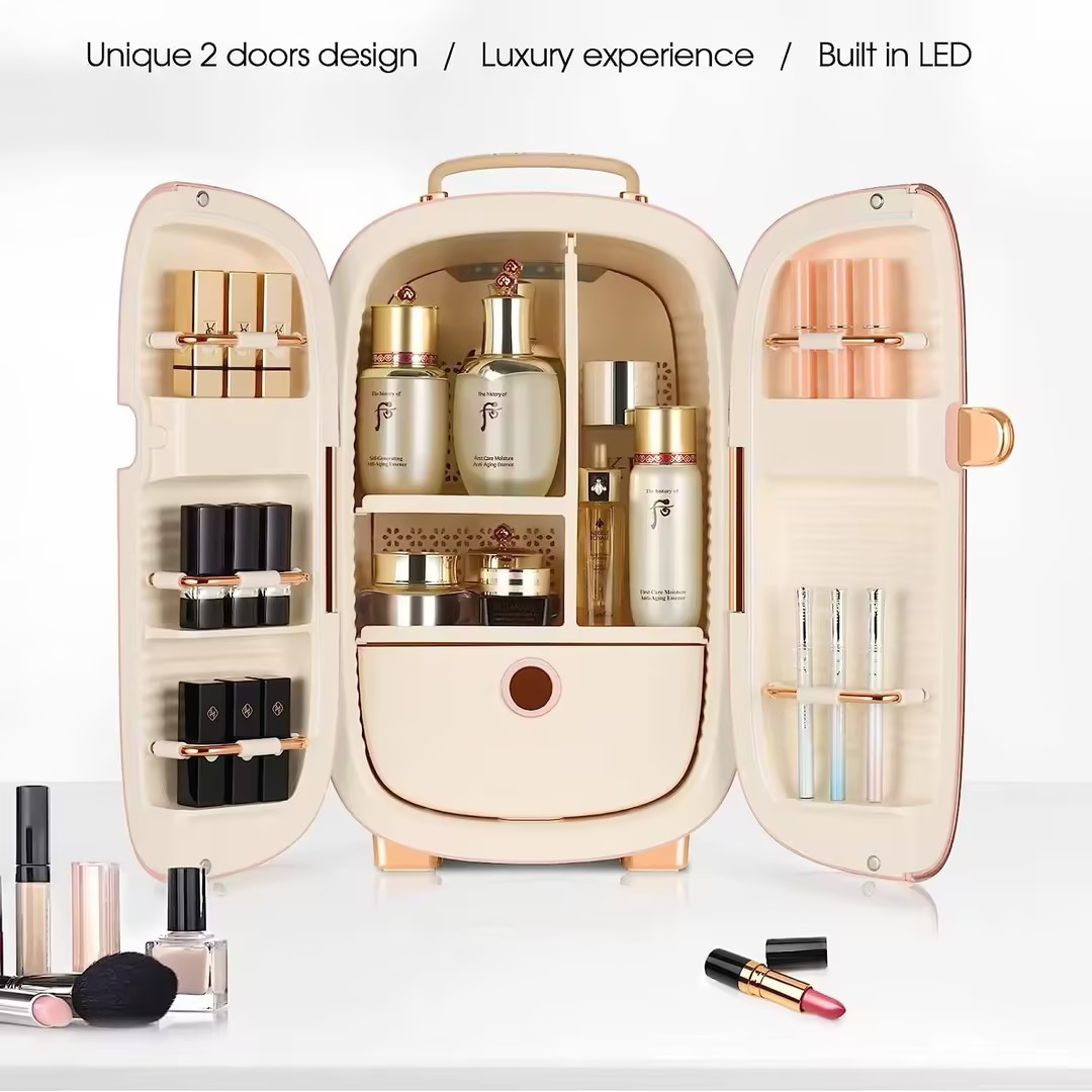 Whether placed on a vanity counter, bedroom dresser, bathroom cabinet, or office desk, this mini fridge elevates any space with luxury while keeping your beauty essentials fresh, organized, and perfectly preserved.